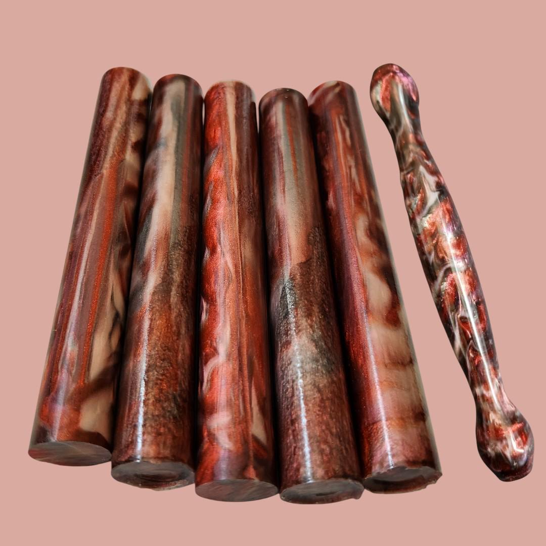 The Cherry Jubilee Pen Blanks swirl together rich maroon, smoky grey, and creamy white, looking like a dessert your lathe would order on date night. Sophisticated, decadent, and just the right amount of over-the-top — these blanks are basically a five-star dessert in resin form.