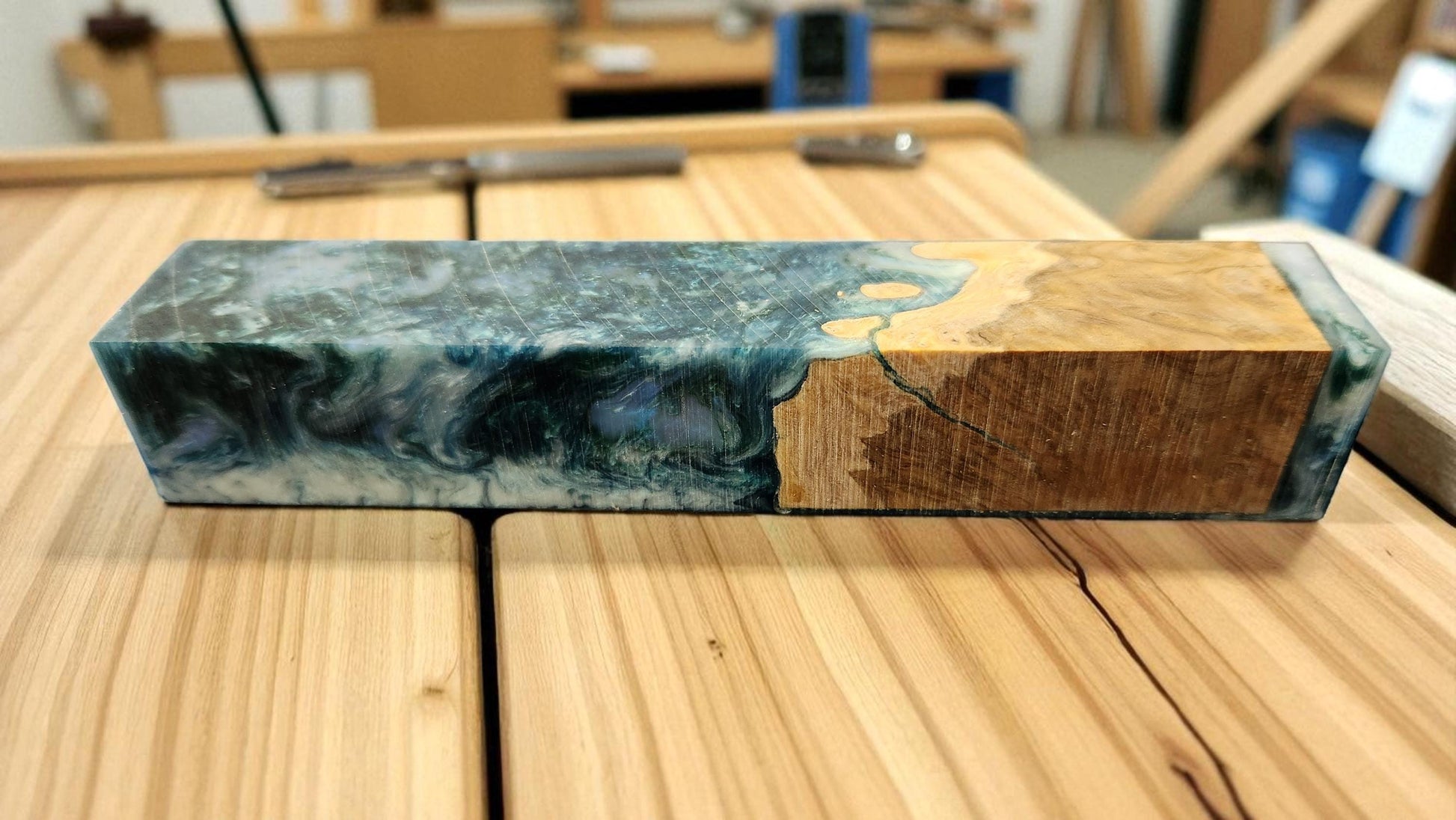 Every piece is meticulously handcrafted using Alumilite resin and hand-selected Mollie wood, resulting in a blank that’s as unique as the pen you’ll turn from it. The color flow dances through the wood grain, revealing depth, contrast, and character in every rotation.